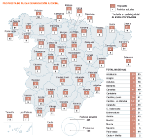 El Consejo General del Poder Judicial ha aprobado un informe en el cual propone reducir a la mitad los partidos judiciales existentes, que pasarían de 431 a 199.